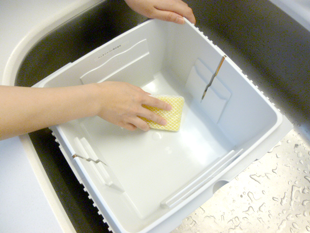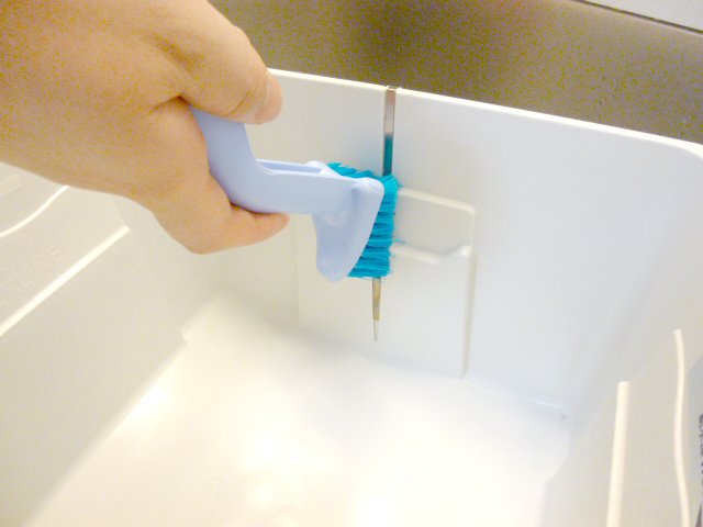②台所用洗剤(中性洗剤)または固形石鹸をブラシやスポンジにつけて、下部ハウジングを洗います。