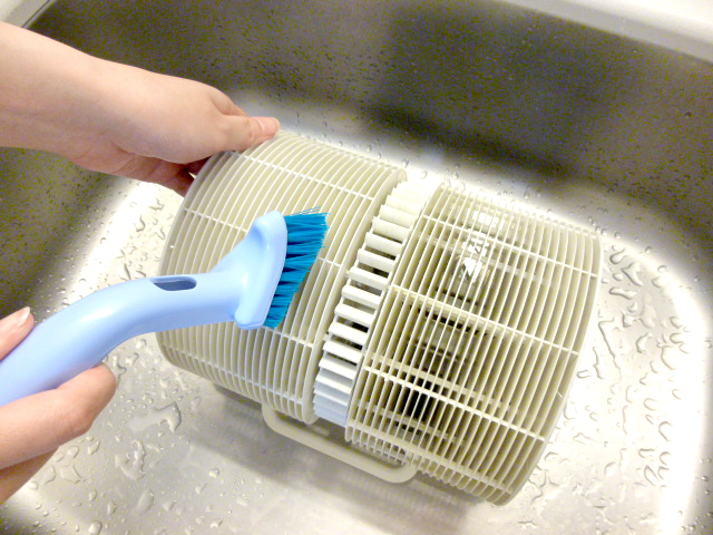 ③ローラーディスクはブラシを使用し、台所用洗剤(中性洗剤)または固形石鹸で洗ってください。
