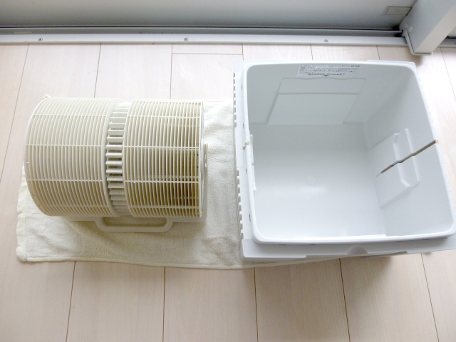 ②外したモーターファンユニットにたまったホコリなどは、モーターファンユニットの外から掃除機などで取り除いて下さい。