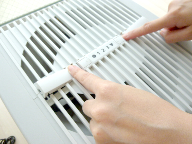 電源ボタンと風量切替ボタンの横のくぼみを押して写真のように両端を上げてください。